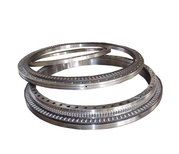 三排滚柱式回转支承(13系列)——无齿式 结构特点、性能、适用范围 三排滚柱式回转支承有三个座圈,上下及径向滚道各自分开,使得每一排滚 柱的负载都能确切地加以确定。能够同时承受各种载荷,是四种产品中承载能力较大的一种,轴、径向尺寸都较大,结构牢固,特别适用于要求较大直径的重型机 械,如斗轮式挖掘机、轮式起重机、船用起重机、港口起重机、钢水运转台及大吨位汽车起重机等机械上。